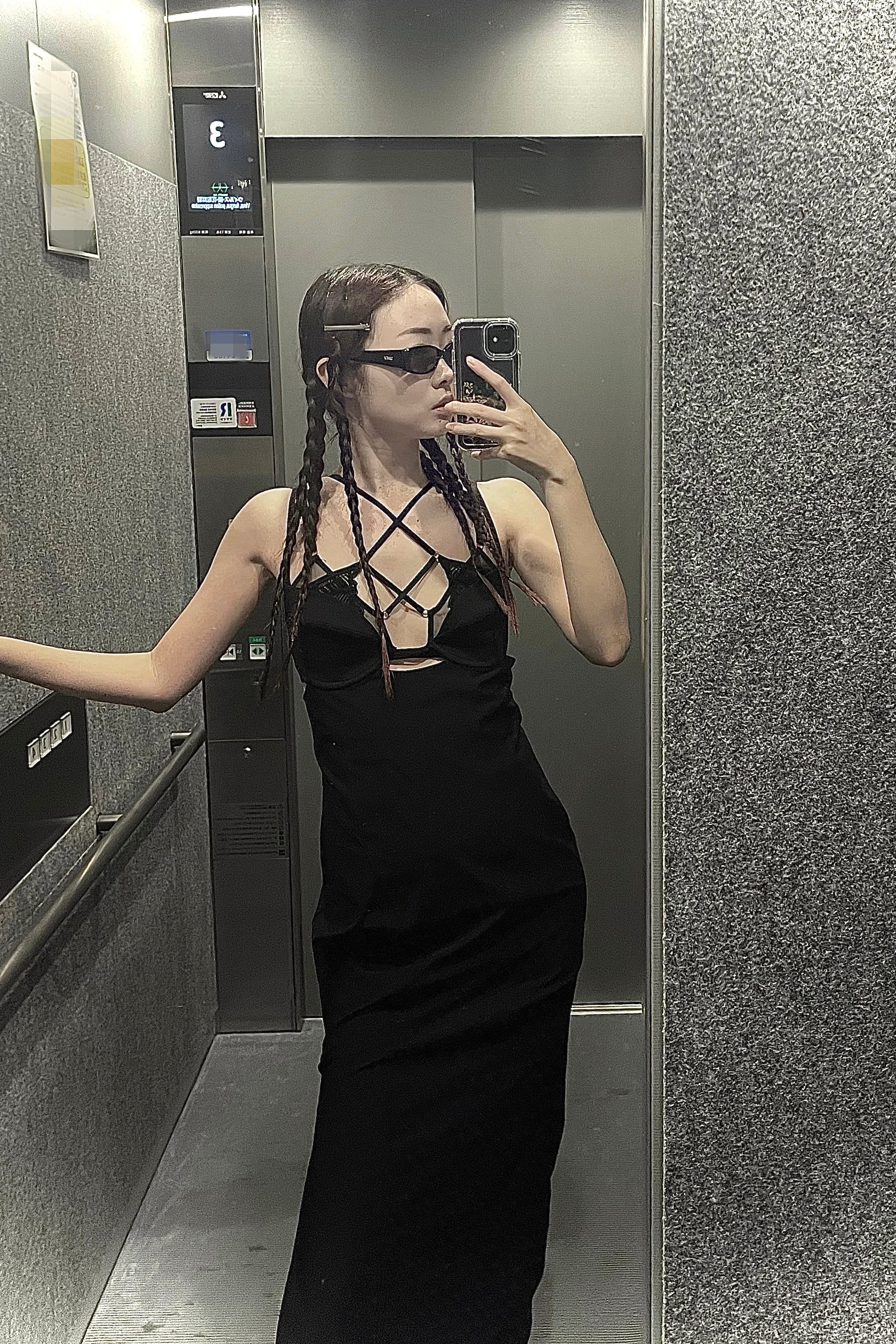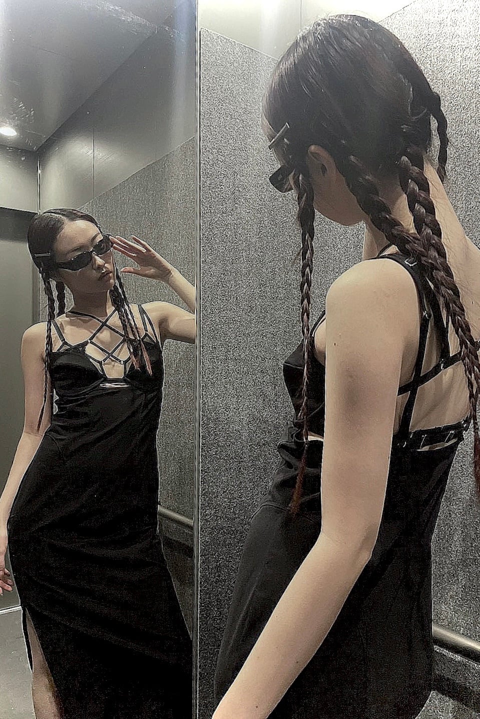 ワイヤーブラとタイトワンピースのドッキングシルエットです。