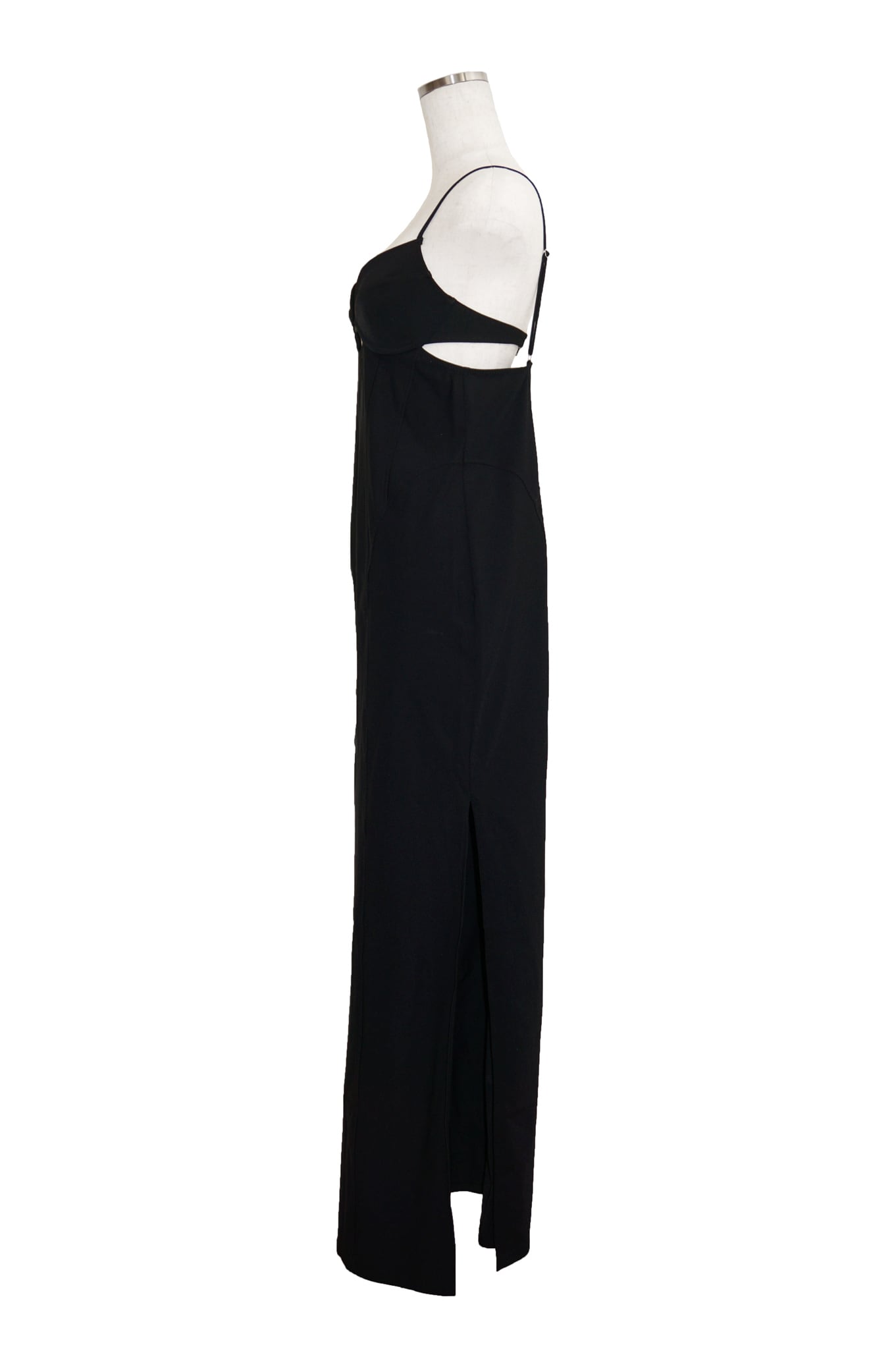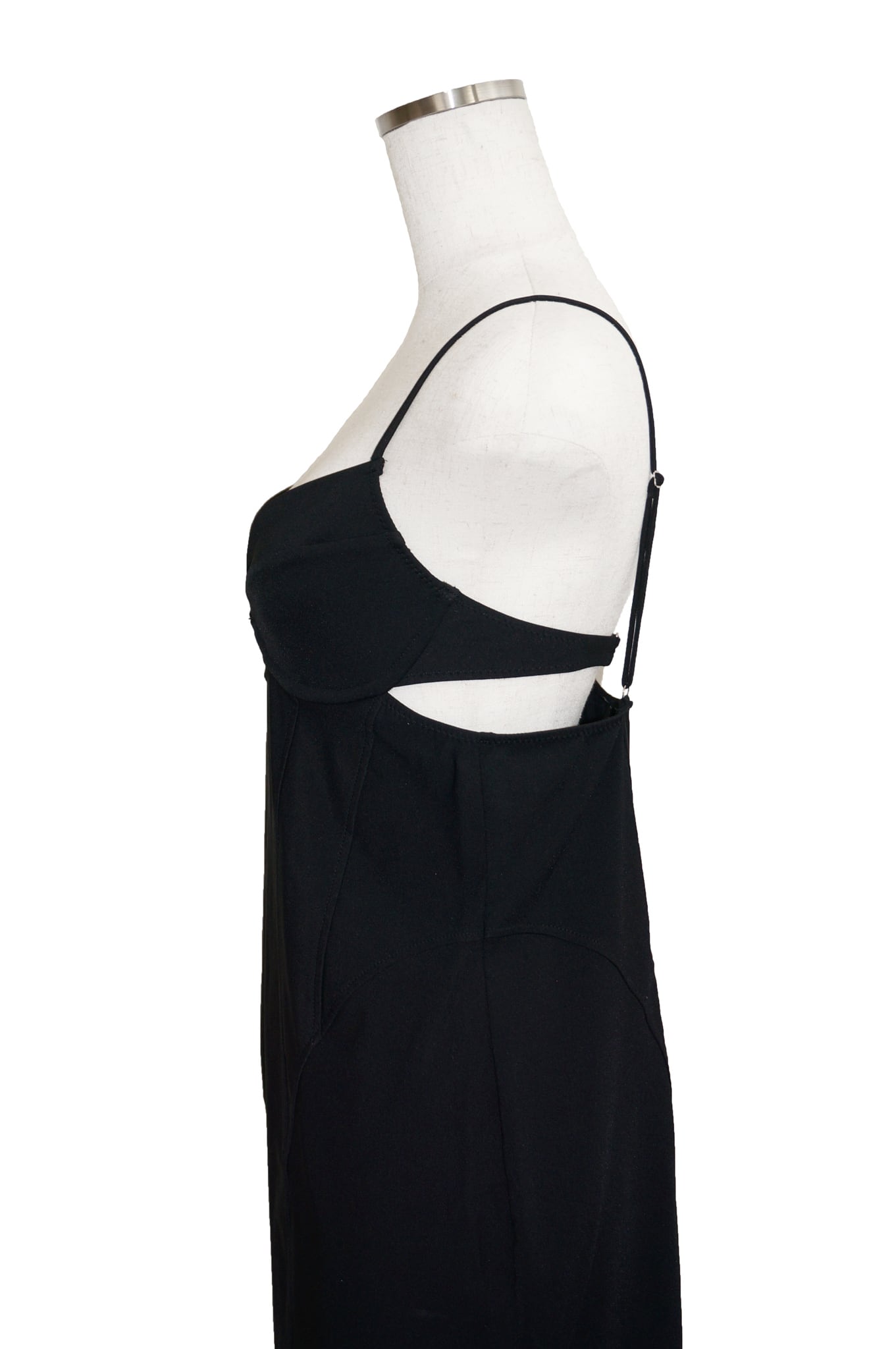 バストアンダーから裾にかけてコルセットライクな切替デザインが施され、