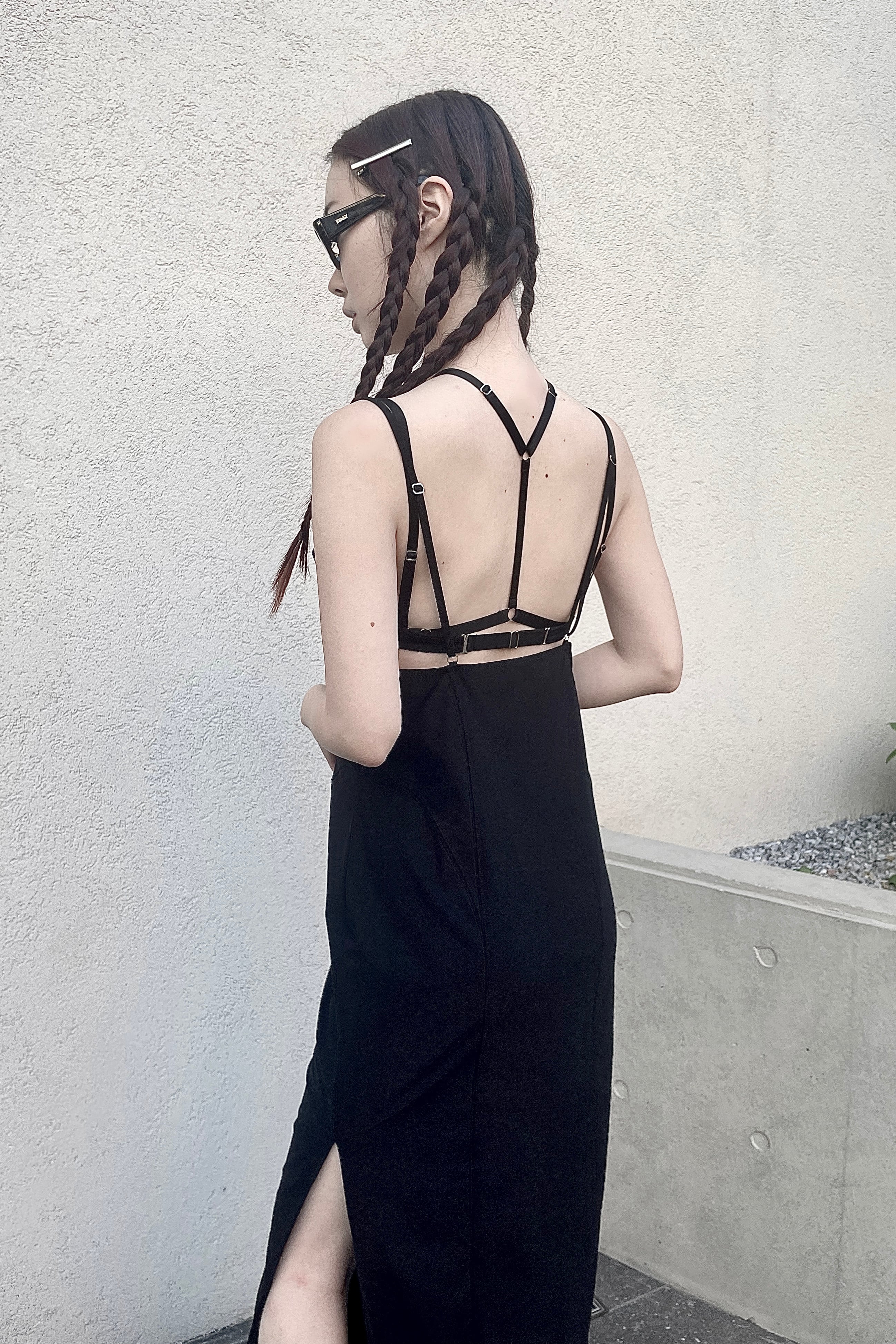 頭からかぶり、バストアンダーのホックを留めて着用いただけます。