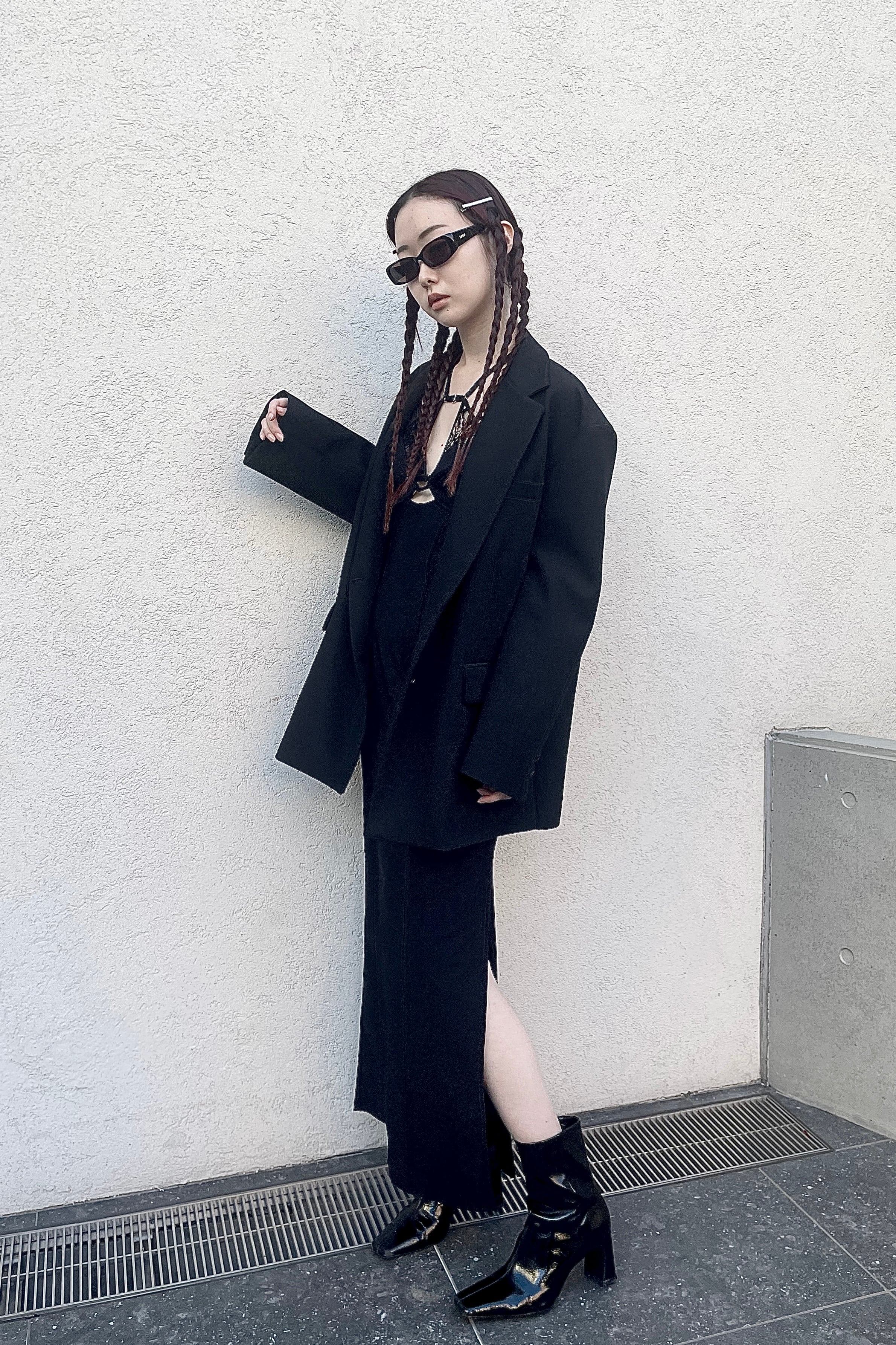 中から覗かせるランジェリーによって多彩に表情を変えるアイテムです。