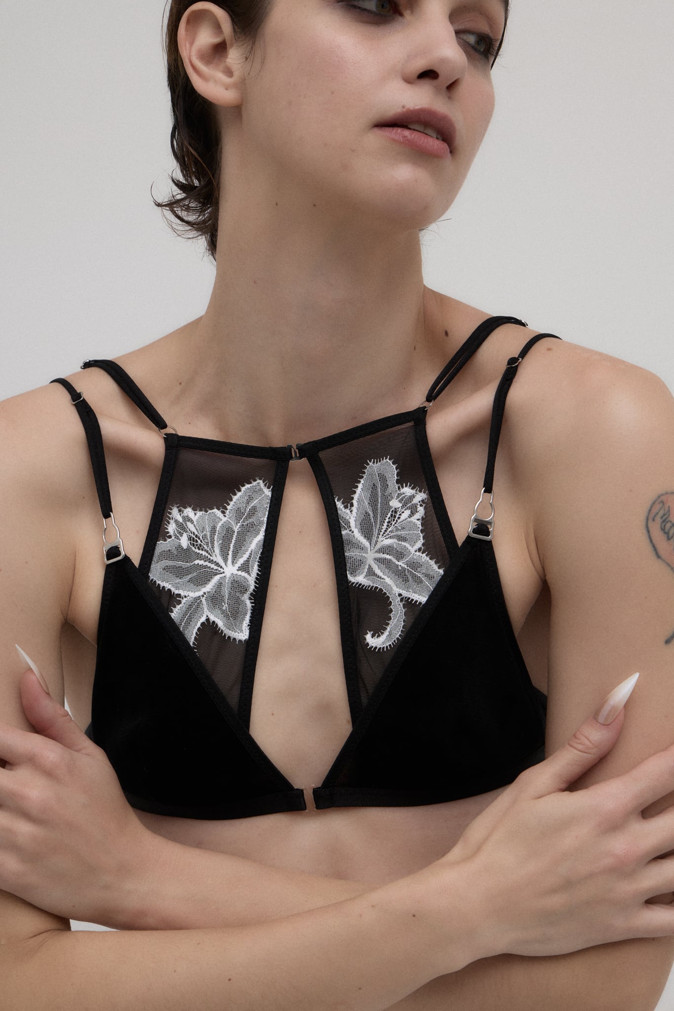 Layered Bra "new skin -OSHIBANA-" / Black×White