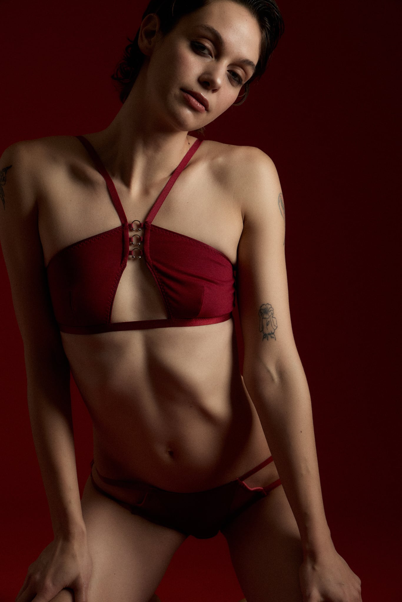 Triple Piercing Bra [ PETITE PAUSE ]-Piercing- / DEEP RED